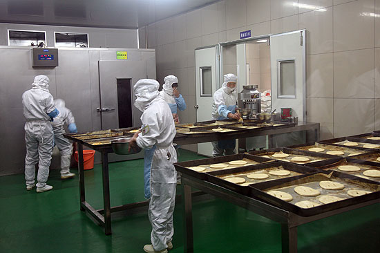 视察组深入到早餐食品企业生产车间实地察看食品生产情况