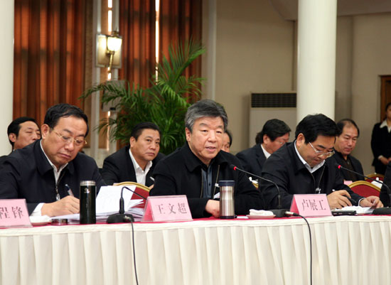 省人大常委会副主任王文超(前左),郑州市委书记连维良(前右)参加分团审议
