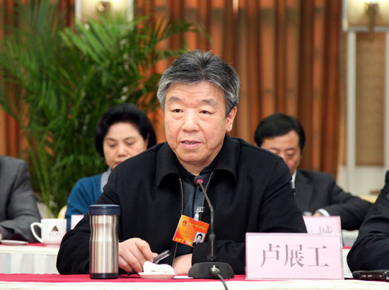 省委书记卢展工来到郑州代表团,和代表们一起审议报告
