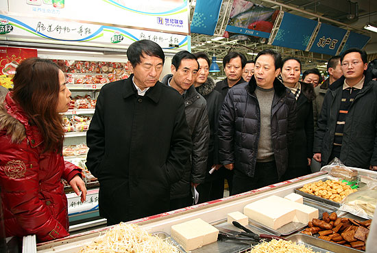 人大常委会副主任刘全心在商超察看副食品供应情况