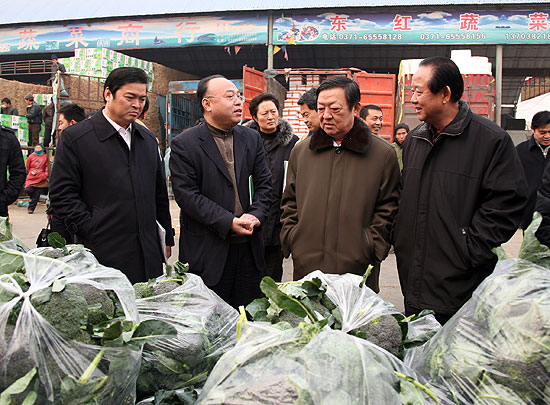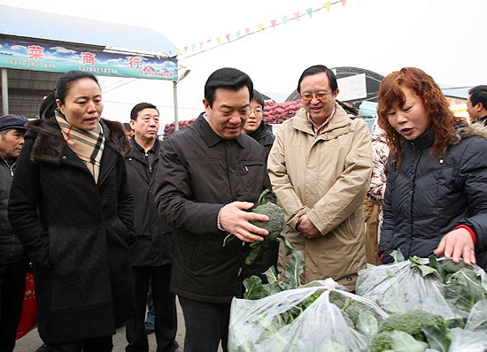 市人大常委会主任白红战在刘庄蔬菜批发市场实地察看,并向商户了解蔬菜购销情况
