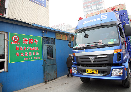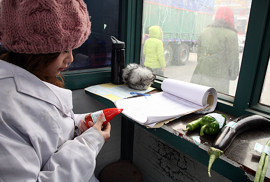 在刘庄蔬菜批发市场每一批次运来的蔬菜都要经过抽样检验