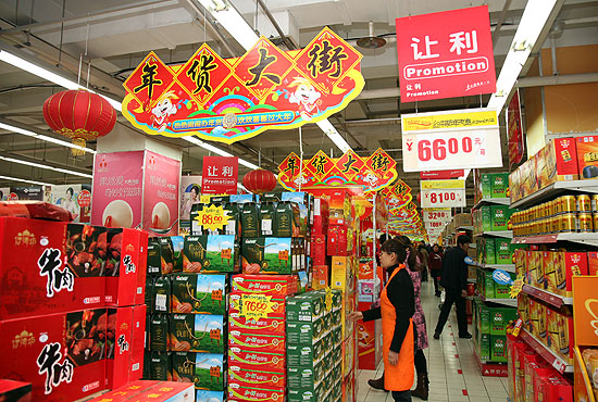 春节前夕,经三路世纪联华超市已经备好充足的各种商品
