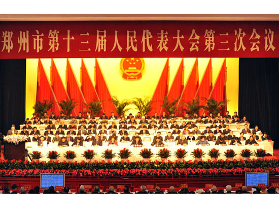 2月11日,郑州市第十三届人民代表大会第三次会议在市青少年宫隆重开幕。下午14时30分,来自于各条战线的500多名人大代表肩负着全市人民的重托,满怀信心地步入会场。在未来的5天内,他们将认真履行法律法规赋予的职责,共同谋划郑州发展大计,引领全市人民为加快郑州都市区建设、持续推进跨越式发展、形成中原经济区核心增长极的发展目标而努力奋斗。