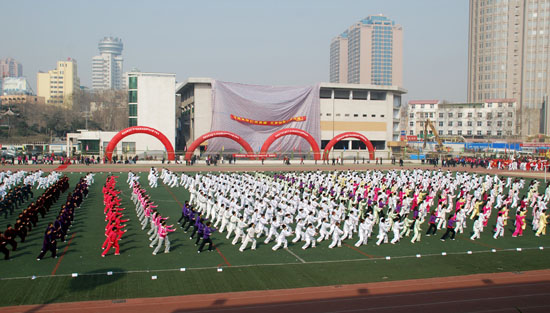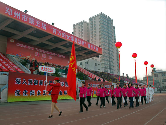 郑州人大网3月7日讯 今天上午,郑州市第五届“百万妇女健身活动”展示大赛在市体育场开幕,市人大常委会副主任栗培青出席,市人大常委会机关代表团参加开幕式并参加千人太极拳表演。
