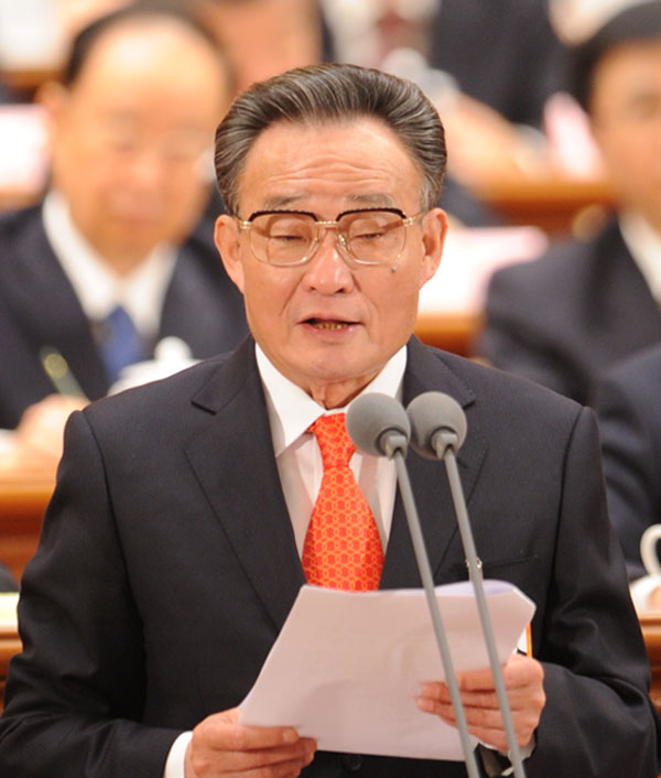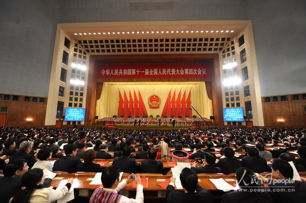 9时27分,全场起立,高唱国歌。吴邦国宣布:第十一届全国人民代表大会第四次会议胜利闭幕。