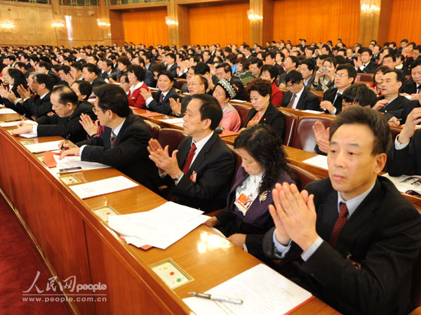 会议表决通过了关于政府工作报告的决议。决议指出,会议高度评价“十一五”时期我国经济社会发展取得的巨大成就,充分肯定国务院过去一年的工作,同意报告提出的“十二五”时期的主要目标任务和2011年的工作部署,决定批准这个报告。