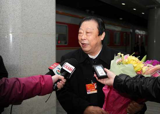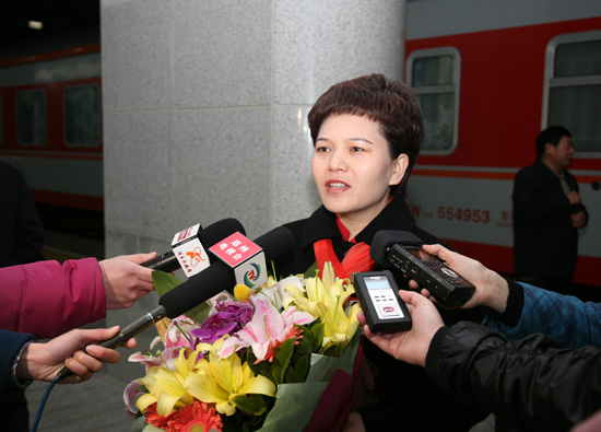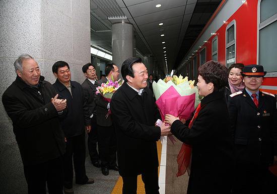 郑州人大网3月15日讯 出席十一届全国人大四次会议的驻郑全国人大代表,在圆满完成大会的各项议程后,于今日清晨乘火车返回郑州。市人大常委会主任白红战,副主任王旭彤,秘书长刘焕成等到车站迎接。