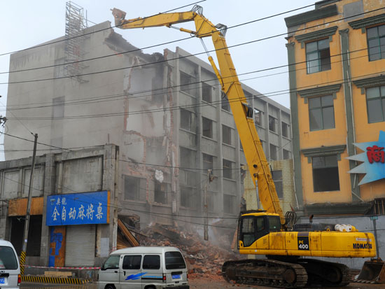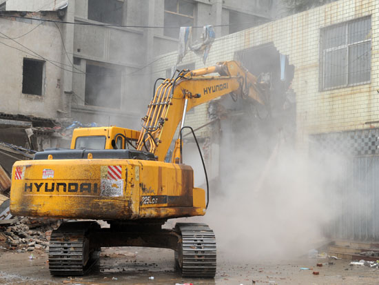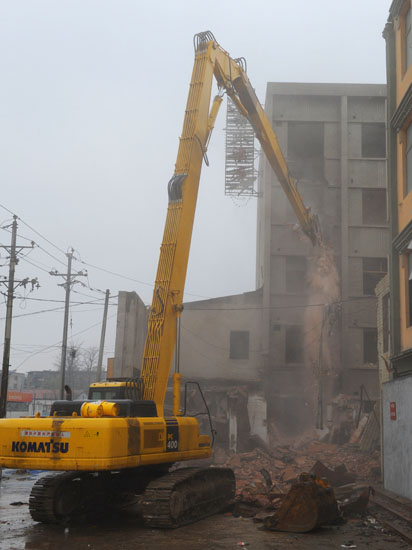 郑州人大网4月2日讯 今天上午9:30分,随着几辆挖掘机的巨大轰鸣声,二七区京沙快速通道项目指挥部工作人员冒雨开始将郑州铁路局装卸机械厂的一幢办公楼房拆除,以确保工程项目按期完工,积极推进畅通郑州建设。