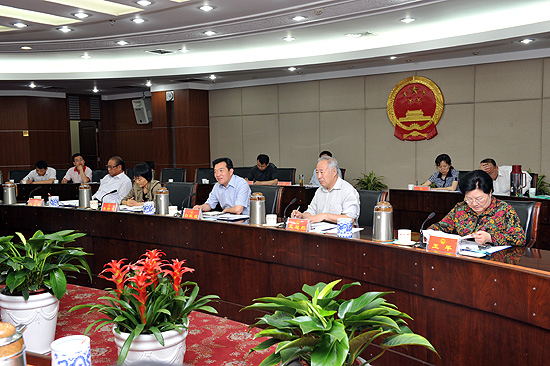 上午的主任会议听取了市文物局局长阎铁成关于文化遗产保护工作情况的报告;听取了市人大常委会教科文卫工委主任许抗美关于文化遗产保护工作情况的视察报告;听取了市公安局副局长张书军关于经济犯罪侦查工作情况的报告;听取了市人大常委会内司工委主任许福亮关于经济犯罪侦查工作情况的视察报告;听取了市人大常委会城建工委主任张文田关于《郑州市城市市容和环境卫生管理条例(草案)》情况的说明;市人大常委会副秘书长、办公厅主任李金鹏汇报了六月份常委会会议议题安排意见(草案)。