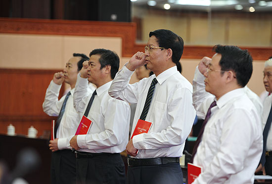 现场举行了新任命4名市政府组成人员就职宣誓仪式。
