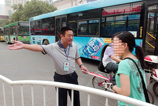 在路口的东北角,白红战和刘焕成对出现的非机动车行驶在机动车道上的行为进行了劝阻。“大家也都知道你们是因为着急上班,可再慌忙也不能不按道行驶。”白红战对一名着急上班而违章的市民进行耐心劝说。