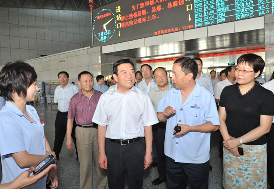 郑州人大网7月25日讯 为加强道路交通安全管理,确保道路交通安全畅通,今天下午,市人大常委会主任白红战带领部分全国、省、市三级人大代表对我市铁路、公路的交通安全情况进行视察。
