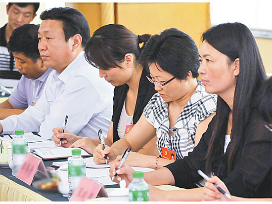 与会代表讨论审议工作报告。 本报记者 丁友明 摄