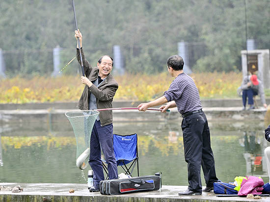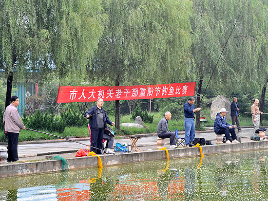 郑州人大网9月29日讯:为欢庆九九重阳节,丰富老同志文化娱乐生活,增进老同志身心健康,今天上午,市人大常委会机关组织了老干部重阳节钓鱼比赛,40余名离退休老同志参加了比赛。市人大常委会主任白红战、副主任王旭彤为钓鱼比赛成绩优异者颁发了奖品,并代表常委会党组和全体在职干部职工向离退休老同志们致以节日的祝贺和亲切的问候。