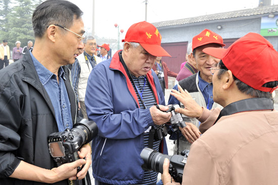 老年摄影爱好者进行交流