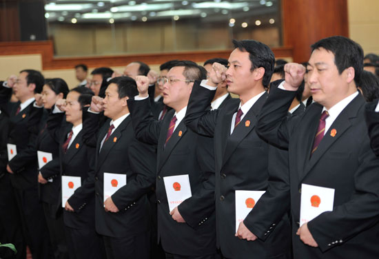 新任命的市人民政府副市长李公乐作表态发言,新任命人员现场接受任命书。