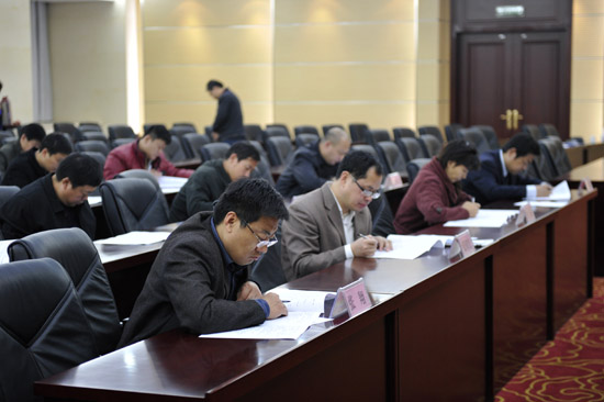 郑州人大网11月8日讯 为加强党员干部反腐倡廉理论学习,增强理论素质、提高业务能力,筑牢拒腐防变思想道德防线,今天上午,市人大常委会举行2011年反腐介倡廉建设廉政知识测试。 此次测试采取闭卷笔试的方法进行,市人大常委会机关30余名干部参加了考试,市惩防办派出专人进行监考、巡视、阅卷,对于缺考或成绩不及格的同志将由市惩防办统一组织补考。