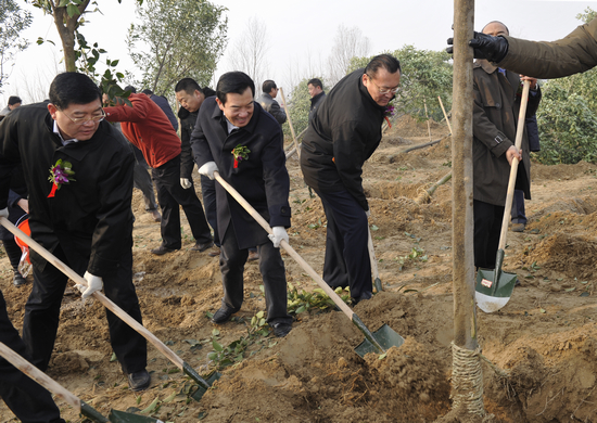 “郑州黄河国家湿地公园示范园工程开工建设!”10时许,白红战宣布郑州黄河国家湿地公园示范园工程正式启动建设。市领导手执铁锹,为郑州黄河国家湿地公园示范园培土奠基,并在园内栽植纪念树。