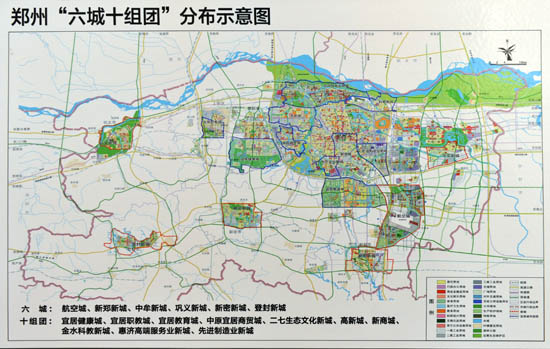 《郑州都市区建设纲要》提出未来郑州都市区建设将加快组团融城发展,建设航空城、新郑新城、中牟新城、巩义新城、新密(曲梁)新城、登封新城等“六城”,重点推进宜居教育城、宜居健康城、宜居职教城、新商城、中原宜居商贸城、金水科教新城、惠济高端服务业新城、二七生态文化新城、先进制造业新城和高新城等“宜居城市十组团”建设。统筹交通、产业、教育、医疗和城市基础设施,合理调整城市空间布局和功能分区,引导形成“宜居、宜业、宜商、宜游”的城市新区。