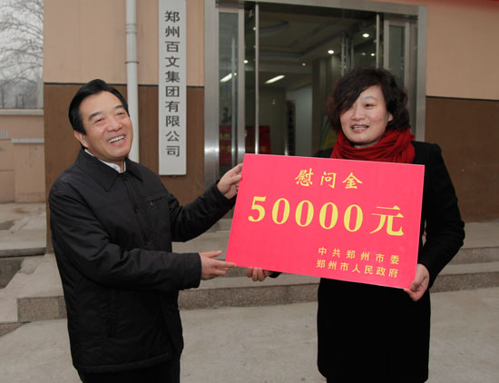 在困难企业郑百文集团有限公司,白主任向企业送去了慰问金,并询问了企业改制有关情况,希望企业在研究好政策,做好职工思想稳定工作的同时,积极推进改制步伐,通过改制促进企业有更好的发展空间,职工生活的更好。
