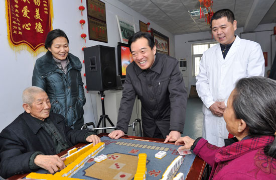 每到一户,白红战一行都为困难家庭送去米、面、油等生活用品及慰问金,并详细了解了其家庭生活、身体状况、就医就学等情况,并嘱托随行人员,要经常主动到困难群众家中走访了解情况,及时帮助他们解决实际困难,把党和政府的关怀落到实处。 在区中心敬老院,白红战详细询问了老人们的饮食居住、文化活动、医疗保健情况及身体状况,仔细了解并实地察看了敬老院硬件设施配备情况,并叮嘱敬老院一定要把老人的冷暖和健康时刻挂在心上,在安排好老人的饮食生活的基础上,尽可能丰富老人们的文化生活,细心工作,耐心服务,使老人们安度晚年。同时,市卫生系统要加强对敬老院医护人员培训,尤其是应急救援方面的培训,确保及时迅速提供应急保健服务,保障老人身体健康。