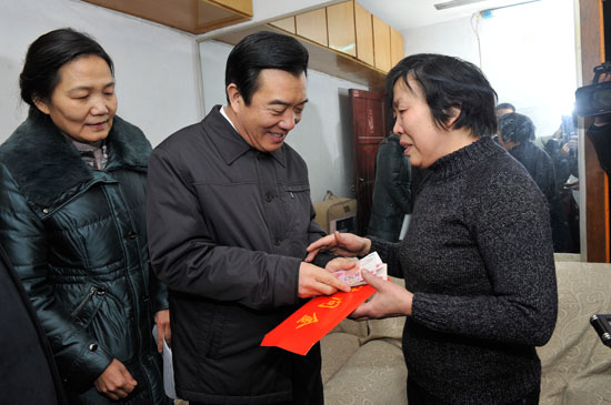 郑州人大网1月15日讯 今天上午,市人大常委会主任白红战先后来到金水区大石桥、南阳路、南阳新村、兴达路街道办事处等地,看望慰问了困难企业、军烈属、困难职工、区中心敬老院老人,送去党和政府的关怀和温暖。