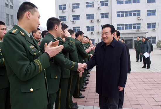 郑州人大网1月17日讯 新春送祝福,军民一家亲。昨日,市领导白红战、张学军、岳喜忠等一行走访慰问驻郑部队,为官兵们送去新春的祝福和问候。