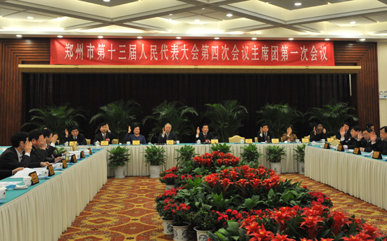 郑州人大网1月31号讯 今天下午,市十三届人大四次会议预备会议结束后,新选出的大会主席团举行了第一次会议。 会议由市人大常委会主任白红战主持。 会议推定了大会主席团常务主席,决定大会执行主席分组名单;决定大会日程和大会副秘书长名单;表决通过了代表提出议案和审议处理的规定;审议通过了关于接受有关人员辞去职务的决定草案,通过选举和表决办法草案。
