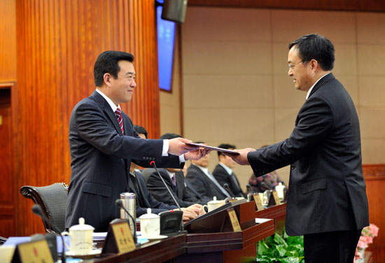 市人大常委会主任白红战向新任命人员颁发任命书