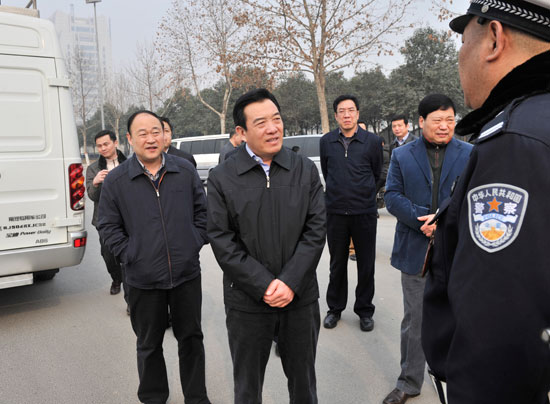 市人大常委会主任白红战一行在机动车尾气路检现场向执勤民警了解情况