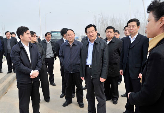 视察组一行在中牟县清源大桥实地察看贾鲁河水质治理情况