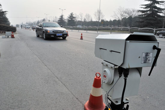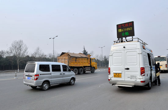 机动车尾气遥感监测车在市区主要出入口进行路检