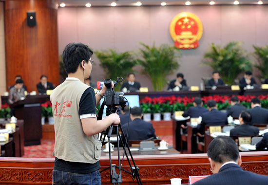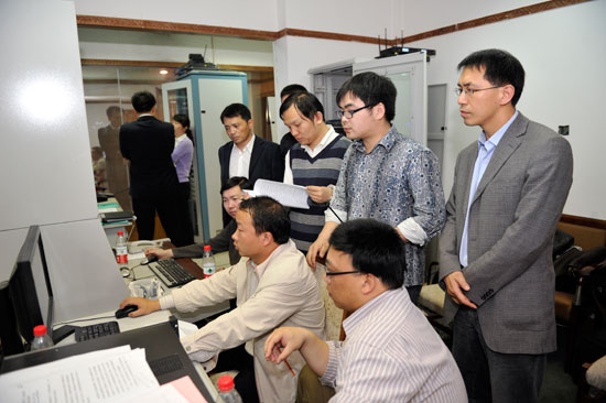 郑州人大网和中原网的技术人员在进行网络直播