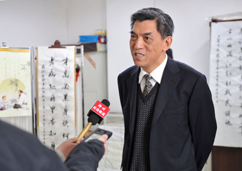 市人大常委会民侨外工委主任岳德常接受媒体采访
