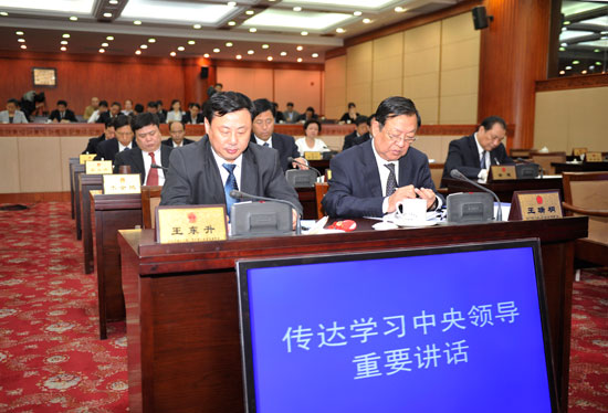 市人大常委会主任白红战首先传达了两位中央领导同志的重要讲话和指示精神。之后,对于如何结合实际,深入贯彻落实中央领导讲话和指示精神,做好当前和今后人大及其常委会工作,他要求与会人员要深入学习、深刻领会,通过学习,牢牢把握稳中求进的工作总基调,提升对加快推进新型城镇化建设的认识;通过学习要倍加珍惜中原经济区、郑州都市区建设的良好开局;倍加珍惜市人大常委会“团结、干事、服务、创新”的和谐氛围,在贯彻落实中央和省委、市委精神上、推动市委决策部署的落实上、在坚持和完善人民代表大会制度上、在依法履行常委会职能上、在发挥人大代表作用上积极作为、持续求进;同时还要不断加强对中国特色社会主义理论学习,努力建设学习型机关;加强作风和廉政建设,做到勤政务实为民;加强队伍建设,切实增强履职能力;加强制度建设,不断提升人大工作的规范化、制度化和科学化水平。