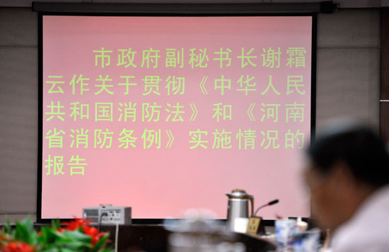 会议听取了市政府副秘书长谢霜云关于贯彻《中华人民共和国消防法》和《河南省消防条例》实施情况的报告;听取了市人大常委会内司工委主任许福亮关于贯彻《中华人民共和国消防法》和《河南省消防条例》实施情况的执法检查报告。会议指出,消防安全事关社会发展和稳定,要强化宣传教育,深化全民消防安全意识,加强排查治理消除安全隐患,将排查治理工作纳入网格化管理,进一步落实消防安全责任,做好“三夏”消防工作,建立应急救援消防机制,根据贯彻实施情况,市人大常委会适时出台条例。