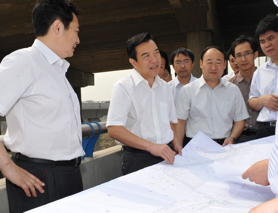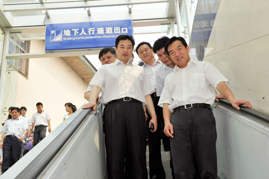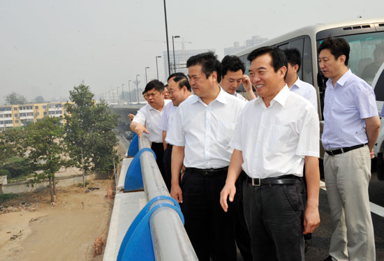随后,视察组一行先后到北三环、农业路立交桥、火车站西出站口、长江路南隧道入口等处,实地察看了京广快速通道工程北一期工程、火车站西出口横跨京广快速通道地下人行通道及隧道管理用房等建设管理情况。