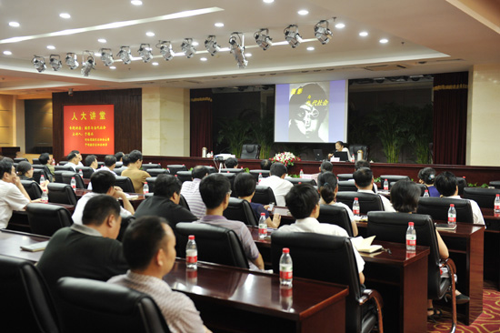 “人大讲堂”是根据我市人大工作创新发展的实际,积极探索常委会机关文化建设的新方法、新形式。它结合常委会的机关建设、人大理论实践的需要、干部年度培训计划、丰富机关文化生活四个方面,整合常委会机关的各种专题学习,统一命名为“人大讲堂”,是常委会机关创建的文化品牌,是设立在常委会机关的大学课堂。“人大讲堂”采取请进来的方式,邀请资深专家学者和有关领导定期在机关作专题讲座。内容涵盖市委中心工作、中央和省市委重要会议精神解读、人大工作业务、时事政治、党建廉政、道德法律、互联网知识、书画摄影鉴赏、礼仪美育修养等各个方面。