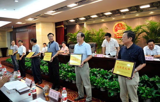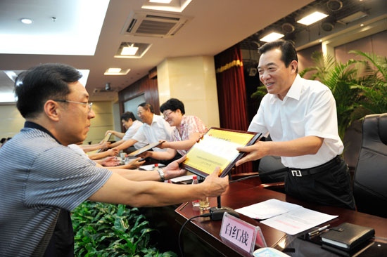 市人大常委会主任白红战为受表彰者颁发证书