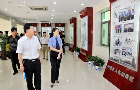 视察组先后实地察看了中原区检察院和郑州市检察院,并听取相关工作汇报。