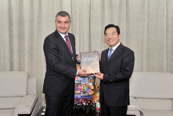 会见中,白红战向来宾简要介绍了郑州悠久灿烂的历史文化和近年来经济社会发展情况。白红战说,郑州历史悠久,是中国八大古都之一,中华文明的发祥地之一;全国铁路交通枢纽,高速公路路网发达,全国第21个国际航空城市;郑州拥有汽车和制造业、食品工业、电子产品、铝工业等七大工业主导产业。郑州拥有世界规模最大、生产先进的大中型客车生产企业——宇通客车股份有限公司,目前已达到年产6万辆的规模,位居世界第一,产品销往全球88个国家和地区。白红战表示,此次杰德吉科夫议长的来访,将进一步加深郑州与索菲亚之间的了解,进一步推动两市人大与议会友好合作关系的发展。希望议长一行在郑期间能多走走多看看,为今后两市的合作寻求更多机会,并结出丰硕成果。
