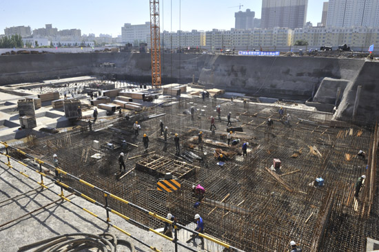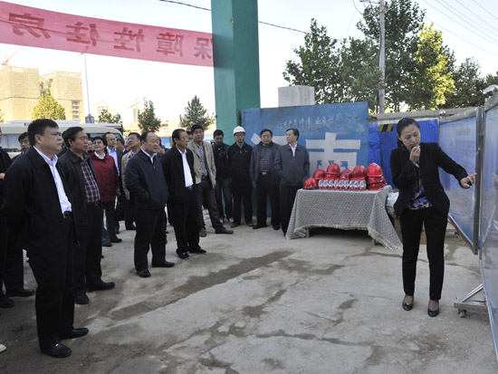视察组在“通河盛世”施工现场察看经适房、公租房项目