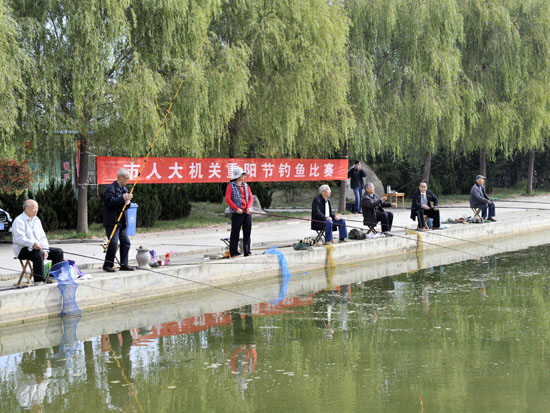 郑州人大网10月23日讯:今天上午,市人大常委会机关举行“九九重阳”离退休干部钓鱼比赛,50余名老干部参加比赛并取得优秀成绩。市人大常委会主任白红战,副主任雷志、贾记鑫,秘书长范强出席活动并为获奖人员颁发奖品,并代表常委会党组和全体在职干部职工向离退休老同志们致以节日的祝贺和亲切的问候。
