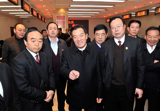 郑州人大网11月20日讯 今天上午,市人大常委会主任白红战带领部分常委会组成人员和部分全国、省、市三级人大代表对我市法院贯彻实施《郑州市人民代表大会常务委员会关于加强全市审判机关行政审判工作的决议》(以下简称《决议》)情况进行执法检查。市人大常委会副主任贾记鑫,秘书长范强参加执法检查。
