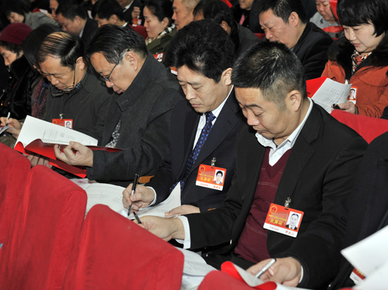 上午9时,出席会议的全体代表肩负着全市人民的重托,认真履行宪法和法律赋予的职权,开始分选区按照指定顺序投票。