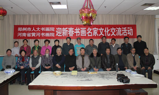 联谊会上,市人大系统书画院院长李保山、河南黄河书画院院长王克成分别介绍了与会的书画名家及两院的基本情况。希望两院加强交流,互通有无,共同致力推进我省及郑州市的文化事业健康发展,为中原经济区和郑州都市区建设贡献一份力量。河南黄河书画院聘请李保山为该院的名誉院长并现场颁发了聘书。