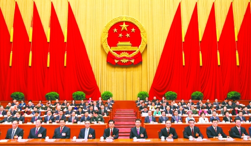 3月17日,十二届全国人大一次会议在北京人民大会堂闭幕。习近平等党和国家领导人在主席台就座