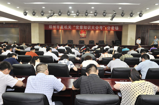 郑州人大网6月18日讯 今天下午,郑州市人大常委会组织机关党员干部50余人参加“党章知识大会考”。