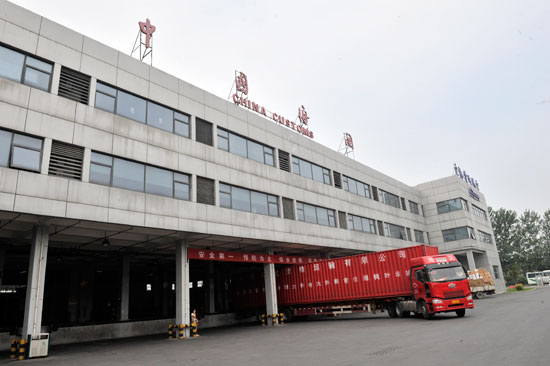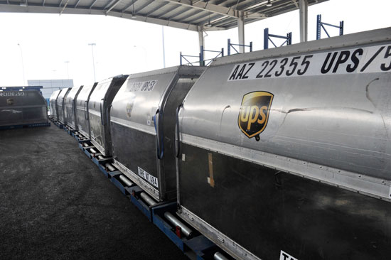 调研组一行来到新郑机场UPS(联合包裹服务公司)运转中心,实地察看货物运载情况,并听取相关汇报。